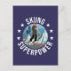 Ett vackert exempel på vinterskidsport, som visar bergsgrafik och en kvinna på skidor, och ordspråket: skidåkning är min supermakt och små stjärnor. Det här är perfektens gåva till alla, som kärlek skidar, berg och vintersporter.