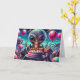 Lönsam utomjordisk utlänning som äter födelsedagskalas med ett ballongkort för bakgrundsfödelsedag. Inuti finns en främmande födelsedagspresent som kan vara personlig om du vill.