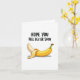 Det här hälsningskortet kommer snart att ge ansikte ett leende! 🍌 med en lekfull bananskal av tecknad med en sansad gult som håller på att plocka ut, mot en ren vit bakgrund. Det handskrivna svarta stil-teckensnittet ger en personlig beröring med ord "HOPE DIG" på den övre raden och "PEEL BETTER SOON" på den andra raden, perfekt centrerad ovanför den vackra bananillustrationen. Det här kortet utstrålar positivitet och kommer säkerligen att göra din kära dag ljusare när de återhämtar sig. 🌟 dem att du tänker på dem med det här söta och tankfulla kortet!