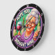 Det här rund, dekorativa tecknet har en glad, tecknad kvinna med ett glas rött vin och en massa druvor. Bakom henne finns två vin flaskor på gröntens bakgrund. Texten "HOPE DIG BROUGHT VIN" lägger till en humoristisk beröring, skapar den perfekt biet för köks- eller pub-dekor.