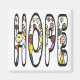 Hoppsymbolen innehåller den stora texten för "HOPE" med en bild av många människor inuti. Ett positivt budskap om hopp med en känsla av stil och roligt.