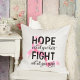 Oktober är bröstcancermedvetandegraden, men denna inspirationskälla är perfekt hela året. Den här vackra kudden visar ett rosa band tillsammans med ord, "Hoppet med hela ditt hjärta, kämpa med all din kraft." Din vän kommer att ta hand om det i åratal för kom.