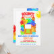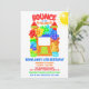 Denna födelsedagsinbjudan till hoppborg är bra för alla som firar med en hoppande fest! Ballongerna och hoppborgsdesignen har en mängd primärfärger och är perfekt för både pojkar och flickor! Låt dina gäster hoppa över för en bra stund!