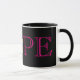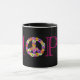Mitt blommigt-fredstecken är "O" i HOPE på detta mäktiga mugg. Teckensnittstypen och färg samt färg i bakgrunden kan anpassas efter kostym. Med hopp är allt möjligt.