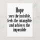 Vackert och nästan poetiskt talesätt om hoppets kvaliteter: "Hoppet ser det osynliga, känner sig det immateriella och uppnår det omöjliga."