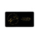Etikett mall i guld färg idealisk för hästvård, hästträning, veterinärtjänster. Denna eleganta design visar hopphäst med cirkulära bokstäver, med företagsnamn och slogan och är helt anpassningsbar.