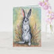 Min pastellkonst, vattenfärg och pennkanin gör ett sött bild på framsidan av detta födelsedagskort, perfekt för alla som kärlek kaniner, djur och natur. Den mjuka blå färgen i målningen upprepas inuti, med en blek gyllene gult gräns och önskningen "Hoppy Birthday"! Nyfiken teckning och design av Tuzi Williams.