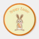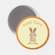 Kylskåpsmagnet för helgdag Påsk med en kanin som håller en morot och ord "Hoppy Påsk".
