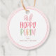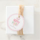 Hoppy Purim. Cute and colorful favor tags, playful typography with bunny ear accent and spring pink pattern backing.