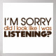 "Förlåt att jag såg ut att lyssna?" - Den här sassliga och attitydfyllda t-shirt-designen är perfekt för alla som vill låta folk veta vad de verkligen.