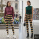 Horizontal Stripe Black Gold Metallic Glossy Leggings