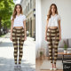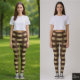 Horizontal Stripe Brown Champagne Metallic Glossy Leggings