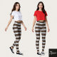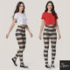 Horizontal Stripe Brown Silver Metallic Glossy Leggings