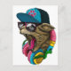Detta är en coola som är utformad för en katt med färgstarka hörlurar