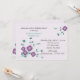 En charmig inbjudan med två sprutar av hörnblommor i en djup lila nyans med teal-grenar och blad.