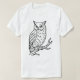 A bold line drawing of a horned owl perched on a gnarled tree branch, rendered with naturalistic detail and a strong gaze. This woodland-style artwork brings a wild, mysterious energy to minimalist nature collections.