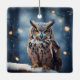 Horned Uggla i Snö täckte skog Julgransprydnad Keramik