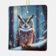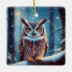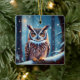 Horned Uggla i Snö täckte skog Julgransprydnad Keramik