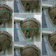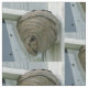 Ett getingbo som är fäst vid det andra artikelfönstret i Järn County Domstol, i Ironton, Missouri.