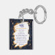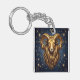 A mystical golden Ram Aries Astrology sign keychain with Aries dates and traits on the back, along with compatibility and other fun Aries facts.