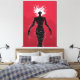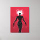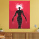 Demon Girl canvas art med en vektorbild som skildrar en svart kvinnlig konstig - ett läskigt spöke med vitt hår, rött ont ögon och deformerat händer med lång nagel över röd bakgrund. Det här konstigens monster bär en klänning som liknar taggtråd med spiken av glas.