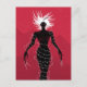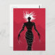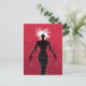 Brevkort från Demon-tjejen med en vektorbild som skildrar en svart konstig av honkaraktär - ett läskigt spöke med vitt hår, rött ont ögon och deformerat händer med lång nagel över röd bakgrund. Det här konstigens monster bär en klänning som liknar taggtråd med spiken av glas.