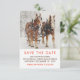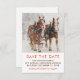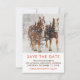 Jul spara datumkortet med ett foto på 2 belgiska draghästar som drar med sig en lur. Snöflingor föll försiktigt ned med snö täckte gräs träd i bakgrunden.
