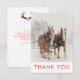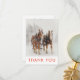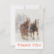 En julklapp tack för att du fick ett kort med ett foto på 2 belgiska draghästar som drar med sig ett lår. Snöflingor föll försiktigt med snö täckte träd i gräs i bakgrunden. Inuti kortet finns ditt personlig-meddelande med en illustration av 2 hoppande hjortar med röd plätering ovanför texten.