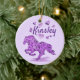 Anpassa den här "en av ett slag"-julprydnaden! Den har en Galloping Horse Silhouette i vackra Lila blommor, omgiven av Lila Hearts! Original Art Design by Artist Kerry Miller.