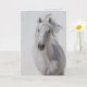 Den vackra vita Lusitano-hingsten springa på en arena i Portugal, mane fly. Detta kort erbjuds av Spara America's Vild Horses.