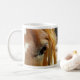 Fotografi av en hästs öga. Utformning på båda sidor om mugg.