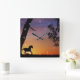 Horse Sunset and Oak Träd Fyrkantig Klocka