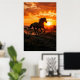 Horse Sunset Poster | Running Black Horse Wall Art