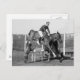 Häst och riddare som hoppar över en bord med en hund och en sittande häst. Hästtrick på Ft. Myer, Virginia, en amerikansk armépost i närheten av Arlington National Cemetery, 1929.