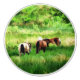 Hästar som betar i en sommarskugga. Vattenfärg.