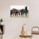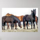 En fotografisk utformning av en hjord av hästar som väntar på att matas.