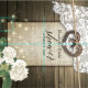 Rustic Land Stil Möhippa / Bröllop Photo Booth Backdroates - Couple Old Horseshoe Heart with Rope Bow Knot and White Snöre, Hydrangea Flower, String Ljus och Burlap Trasa på Old Barn Wood Background. En Perfekt för din stora dag. Alla textstorlekar i stil, färg, kan ändras för att passa dina behov!