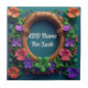 Blantblommor och grönt löv, mot en tealbakgrund. Ram har ett struktur av trä, medan blommigtens arrangemang omfattar en rad olika färger, t.ex. orange, rosa, lila och grönt, som skapar en levande och konstnärlig sammansättning.