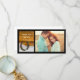 Skicka ett personligt uppskattnings- och tacksamhetsbrev med det charmerande fotoportet Horseshoe och Pearls Land Barn Bröllop för gåvor som tas emot efter en lantgård eller ett westernt stil-möhippa, förlovningsfest eller giftermål. Det här anpassningsbarna för rustik chic är ett tack för att du har ett kort foto av ett rostbildande häst, pärlhalshalsband och vit möhippa med en brunfärgad bakgrund av barrträ.
