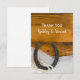 Skicka ett varmt tack och uppskattning för gåvor som tagits emot efter en avslappnad och ännu klassad ranch stil förlovningsfest, möhippa eller giftermål med den rustiska chicen Horseshoe och Pearls Land Westerna Barn Bröllop Flat Tackkort. Denna charmerande anpassningsbar av westernt tackkort för häst innehåller ett fyrfärgat foto av rostande häst, pärlhalshalsband och vit möhippa och en veil för avvanda bruna lingor. Inspektion i perfekt för ett informellt evenemang i gården eller i lada party firande.