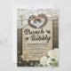 Rustic land stil Brunch och Bubly/Inbjudningskort för möhippan-mall - Ett par gamla hästseshoe-hjärta med Rope Bow Knot och White Snöre, Hydrangea Flower, String Ljus och Burlap Trasa på gamla Barn Wood Background. En Perfekt för din stora dag. Alla textstorlekar i stil, färg, kan ändras för att passa dina behov!