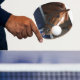 Horsing omkring - uppnosig kastanjebrun horse. pingisracket