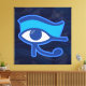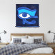 Kanvastryck med Öga of Horus, skyddssymbol i antikens Egypten. Den här metall-utskriften visar Öga i blå toner på Ögon från faded Horus i bakgrunden.