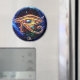 Horus är en kraftfull gudom i den forntida egyptiska pantheonen som dateras från det gamla riket till den romerska perioden (2686 f.Kr. till 641 e.Kr.). Horus har en mans kropp och en falkhuvud. Hans vänstra öga representeras ofta av månen. Wadjet-ögat (vilket betyder "hela varelse") är en kraftfull symbol för skydd. Detta allseende öga kan neutralisera varje ond ande som kommer in i din närhet… Observera: Om du önskar ha någon Zazzle-produkt präglad med en av mina konstverk, låt mig veta dina önskemål och jag ska se till att det blir verklighet. kineticcollage@cox.net