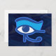 Vykort med Öga of Horus, skyddssymbol i Egyptenen. Den här poster designen visar Horus Öga i blå toner på faded Horus Ögon i bakgrunden.