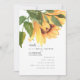Enkel höst solros bröllopsdusch inbjudan. Lövverk. Vit bakgrund.