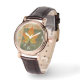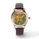 Korgbrunt läderband för kvinnor med perfekt, med en bild av en grönt, orange och gult som täcker löv på vinklad grönt och brunt. Se matchande kvadratisk charm, stor kvadratisk högkvalitativ nyckelkedja för metall och fyrkantig dubbla-sidig akrylnyckelkedja. Se hela Thanksgiving Watch-samlingen under kategorin ACCESSORIES i avsnittet HELGDAGAR.