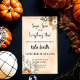 Inbjudan till höstens baby shower - Peachy tonad akvarell, guldram och höstblommor med pumpor (fullständigt anpassningsbar mall)