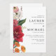 Kombinera romantiska botaniker med modern bekvämlighet med hjälp av den här QR-kodbröllopsinbjudan. Med handmålade vattenfärgade blommigtar som rött amaryllis, rosa ranunculus, mauve chrysanthemums och vit lisianthus blandas naturen på ett bra sätt med tekniken. Gäster kan söka igenom den inbyggda QR-koden för snabb åtkomst till bröllop webbplats, OSA eller digital information. Den varma paletten blommigt färg gör den idealisk för höst, boho eller trädgårdskrävande bröllop. Anpassa enkelt texten och QR-koden så att de stämmer överens med din händelseinformation.