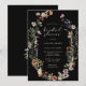 Inbjudan till höst Boho bröllopsfest. Denna stilrena och eleganta bröllopsinbjudan har vackra handmålade akvarell vilda blommor arrangerade som en vacker krans perfekt för vår-, sommar- eller höstbröllop. Hitta matchande föremål i Moody Black Boho Wildflower Wedding Collection.
